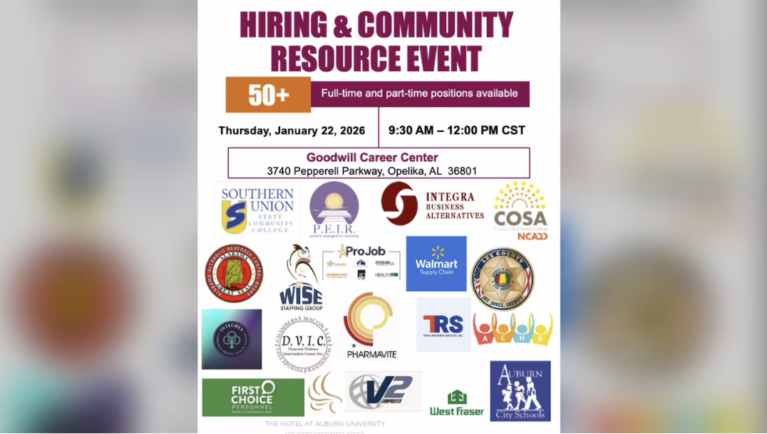 현장에는 Southern Union Community College와 Walmart 등 여러 고용주가 직접 참여해 즉석 면접을 진행할 예정이다. 주최 측은 구직자들에게 이력서를 여러 부 준비해 올 것을 권장했다.