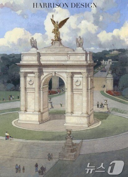 트럼프 대통령은 1일(현지시간) 자신의 소셜미디어 트루스소셜에 ‘독립 개선문(Independent Arch)’으로 불리는 가상 설계 이미지를 직접 게시했다. 이는 하루 전 워싱턴포스트가 독립 250주년 기념 사업의 일환으로 대형 개선문 건립이 검토되고 있다고 보도한 직후 나온 것이다.