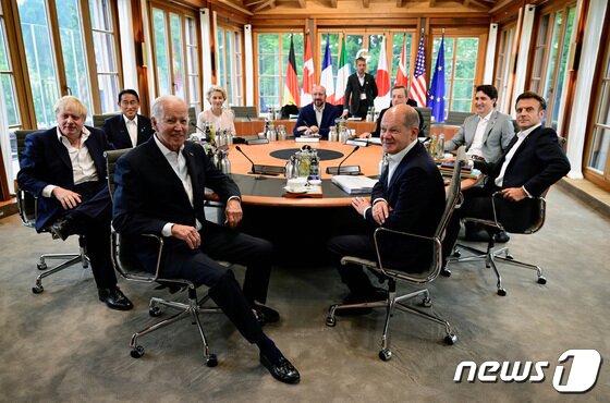 주요 7개국(G7) 정상들이 지난해 6월 독일 바이에른주 엘마우성에서 정상회담을 진행했다. © 로이터=뉴스1 © News1 정윤영 기자