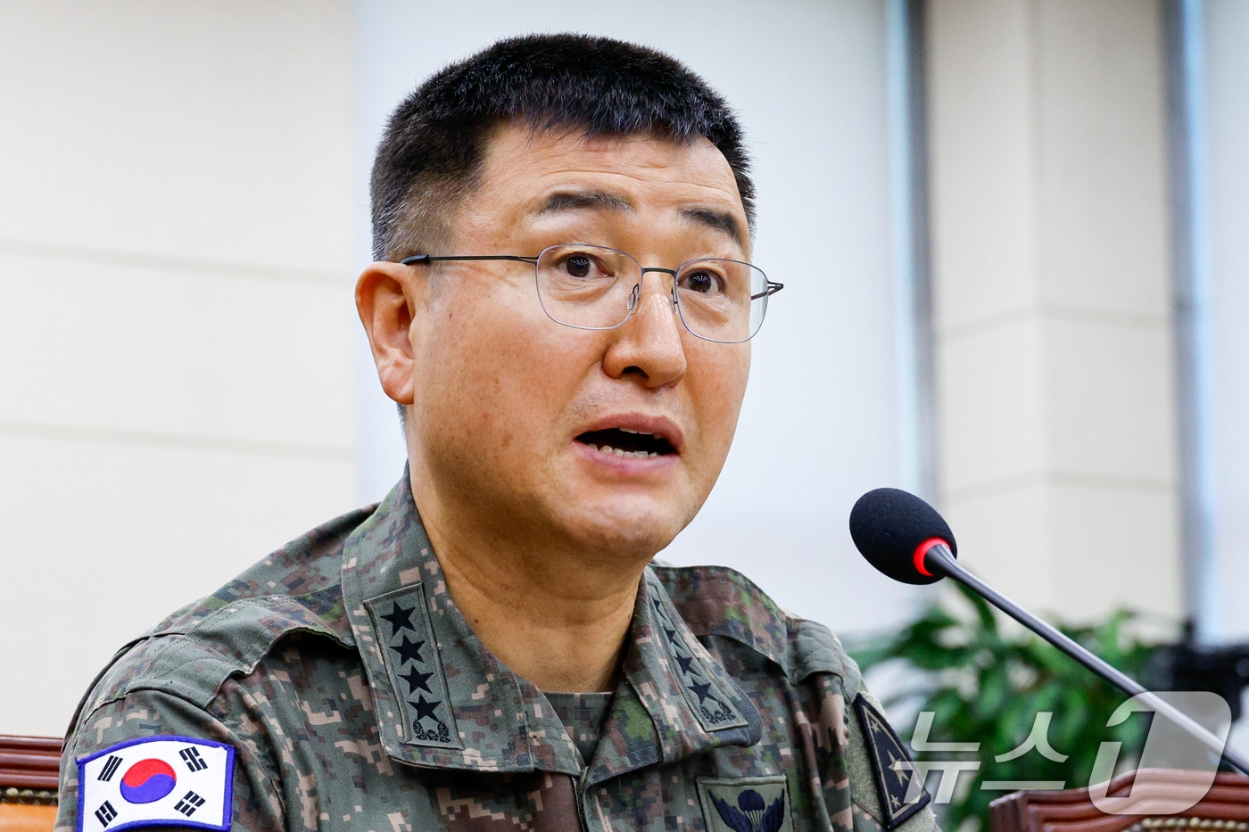 계엄사령관을 맡았던 박안수 육군참모총장이 5일 오전 서울 여의도 국회에서 열린 국방위원회 전체회의 비상계엄 선포 경과 및 병력동원 관련 현안질의에 출석해 의원 질의에 답하고 있다. 2024.12.5/뉴스1 ⓒ News1 안은나 기자