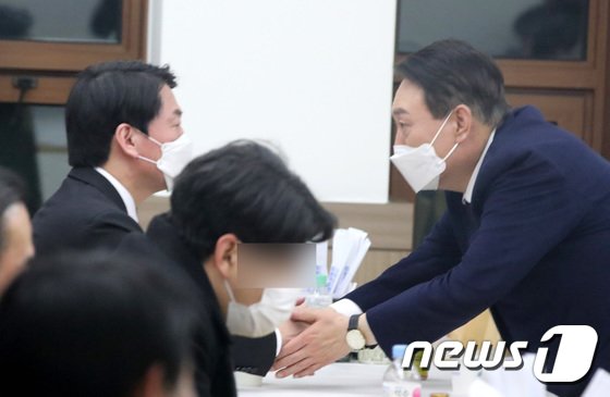 다만 구체적인 면담 내용은 알려지지 않았다. 윤 후보는 조문을 마친 뒤 기자들을 만나 “함께 대선 경쟁을 하고 있는 안 후보에게 이런 안타깝고 불행한 일에 대해 인간적인 면에서 우리 (안철수) 후보와 함께 이야기를 나눴다”면서도 정치 현안에 대해서는 말을 아꼈다.
