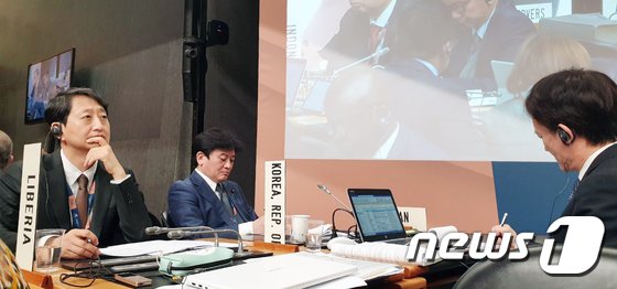 안덕근 산업통상자원부 통상교섭본부장이 14일(현지시간) 스위스 제네바에서 열린 제12차 WTO 각료회의 수산보조금 협상에 참석해 있다. (산업통상자원부 제공) 2022.6.15/뉴스1