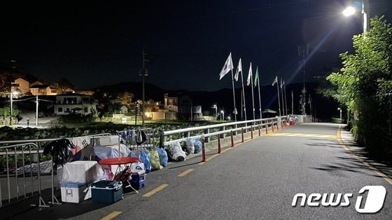 22일 0시 경남 양산 평산마을 문재인 전 대통령 사저 부근 모습. 문 전 대통령 찬반단체의 집회가 주로 열리던 경남 양산시 평산마을의 사저 맞은편 도로가 한적한 모습을 보이고 있다. © 뉴스1 강정태 기자
