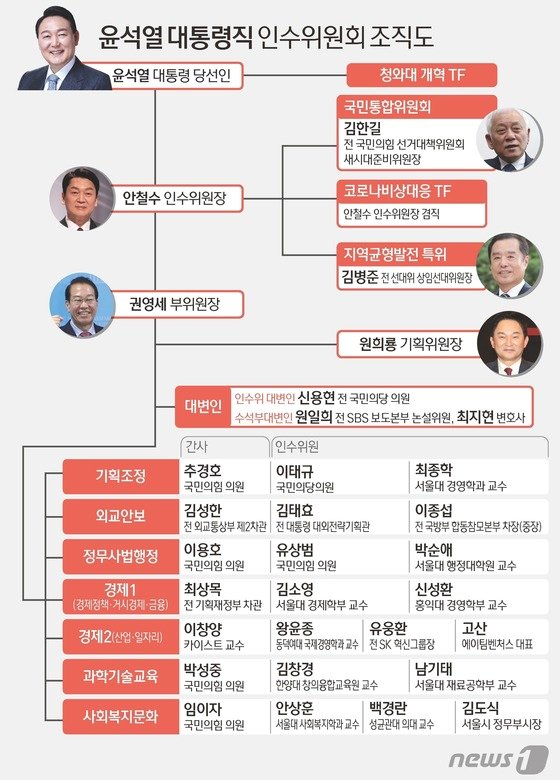 앞서 인수위는 전날(17일) 총 7개 분과 24명의 인수위원 인선을 마무리했다.
