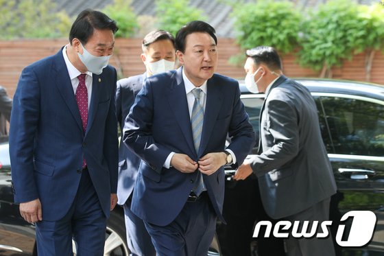 윤석열 대통령 당선인이 6일 오전 서울 종로구 통의동 대통령직인수위원회로 출근하고 있다. 2022.5.6/뉴스1 © News1 안은나 기자