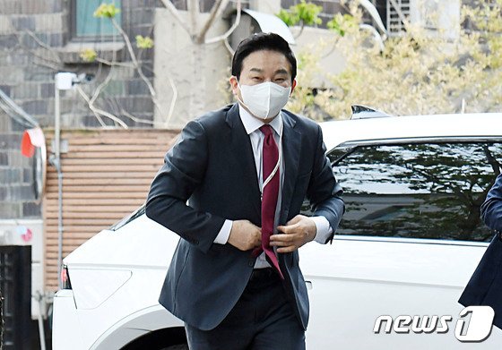 원희룡 국토교통부 장관 후보자가 18일 오전 서울 종로구 금융감독원 연수원에 마련된 제20대 대통령직 인수위원회 집무실로 출근하고 있다. 2022.4.18/뉴스1 © News1 인수위사진기자단
