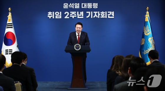 윤 대통령은 이날 오전 용산 대통령실 브리핑룸에서 진행된 취임 2주년 기자회견에서 향후 한미 방위비 협상 등에 관한 로이터 통신 질문에 “동맹관계에 기반해 문제를 풀어나가면 원만하게 여러 협상이 잘 해결될 것”이라며 이같이 말했다.