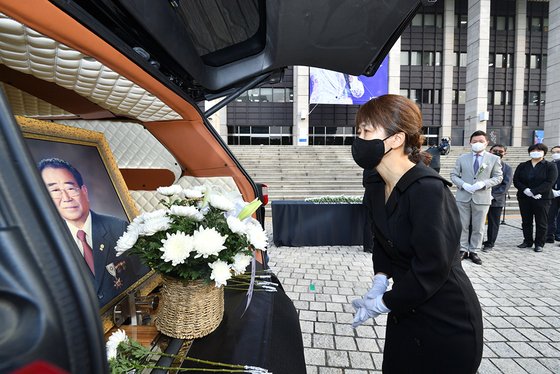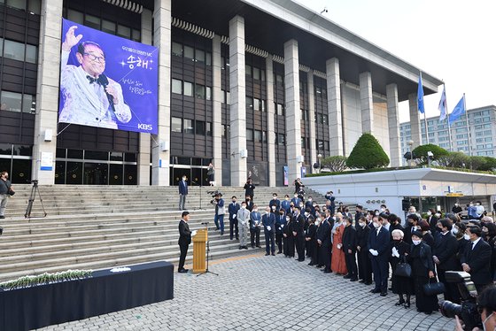 KBS 1TV ‘전국노래자랑’을 통해 현역 최고령 MC로 활동하다 지난 8일 별세한 故 송해의 노제가 10일 오전 서울 여의도동 KBS본관 앞에서 열렸다.