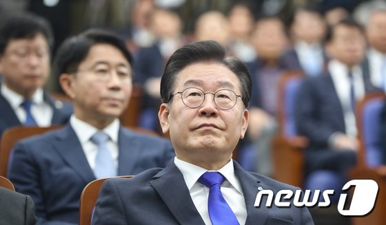 이재명 더불어민주당 대표가 24일 서울 여의도 국회에서 열린 의원총회에 참석해 있다. 2023.2.24/뉴스1 © News1 허경 기자