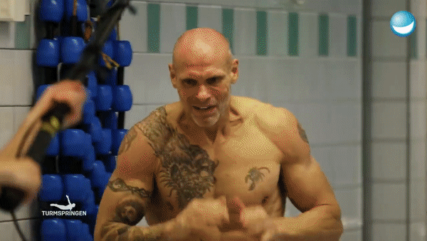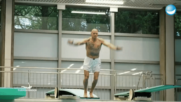 독일의 전 축구 스타가 리얼리티(사실성) TV쇼를 위해 다이빙 훈련을 하다가 고환이 파열됐다.