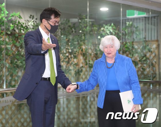 이날 옐런 장관은 추 부총리를 만나기 전 한국은행에 들러 이창용 한국은행 총재와 면담했다.