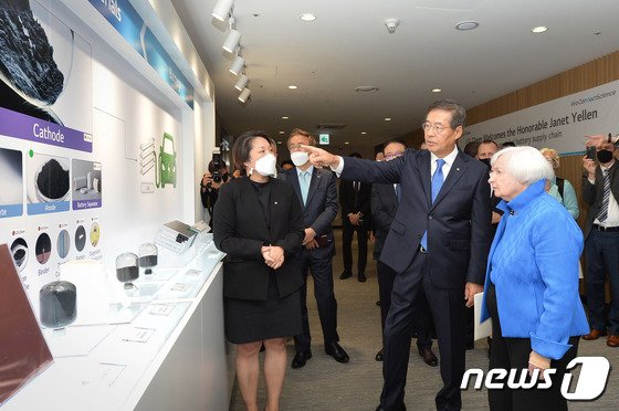옐런 장관은 이날 국내 기업으로는 유일하게 서울 강서구 LG사이언스파크를 방문하고 양국의 배터리·반도체·에너지 등 공급망 동맹의 굳건한 의지를 보이기도 했다.