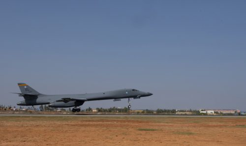미 인도·태평양사령부에 따르면 엘즈워스 공군기지 소속 B-1B ‘랜서’ 전략폭격기 1대가 지난 1일 남인도 벵갈루루 국제공항에 착륙했다. 이 폭격기는 이틀 뒤 옐라한카 공군기지에서 열린 ‘에어로 인디아’에 참가하기 위해 26시간을 날아왔다.