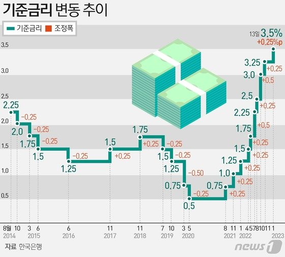현재 한은 기준금리는 3.50%다. 한미 금리 역전 폭이 상단을 기준으로 1.25%p에 달한다.