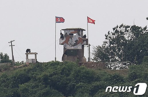 북한이 모든 남북통신연락선을 차단·폐기한다고 밝힌 9일 경기도 파주시 접경지역에서 바라본 북한군 초소에서 북한군 병사들이 경계근무를 서고 있다. 2020.6.9/뉴스1