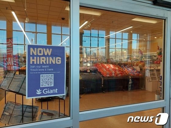 미 버지니아주 맥클린의 한 대형 마트에서 구인 공고를 하고 있다. © News1 김현 특파원