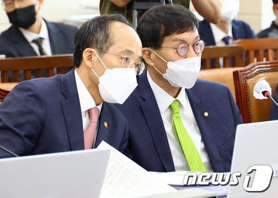 추경호 경제부총리 겸 기획재정부 장관(왼쪽)과 이창용 한국은행 총재. 2022.8.1/뉴스1