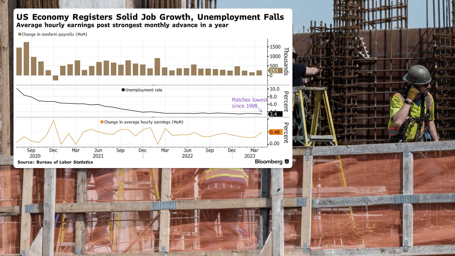미국 노동부는 5일(현지시간) 보고서를 통해 지난달 25만 3000개의 일자리를 추가해 3월(16만5000개)보다 증가했으며 실업률은 3.4%로 하락했다고 밝혔다.