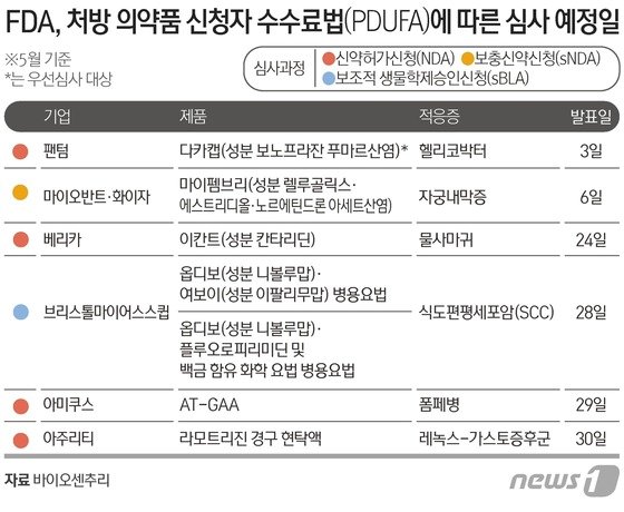 2일 미국 바이오센추리는 허가신청자비용부담법(PDUFA)에 따라 FDA가 이달 중 최소 7개 약물에 대한 심사 결과를 발표할 예정이라며 그중 신약 후보는 4건, 나머지 3개 후보는 적응증 확장을 모색 중이라고 보도했다.