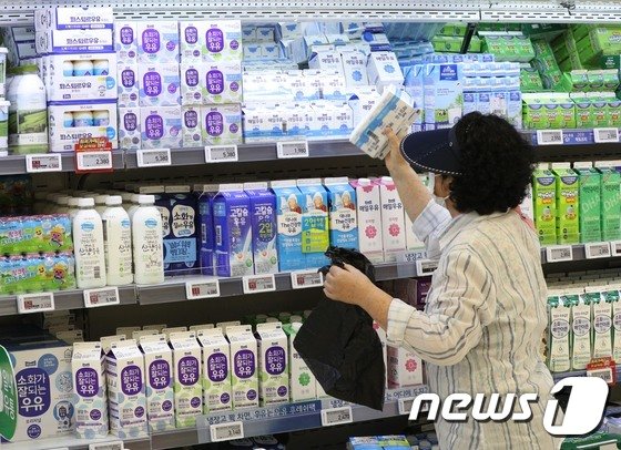 서울의 한 대형마트에서 고객이 우유를 살펴보고 있다. 2021.8.9/뉴스1 © News1 신웅수 기자