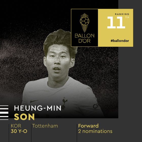 발롱도르 11위에 오른 손흥민 (발롱도르 SNS 캡처)