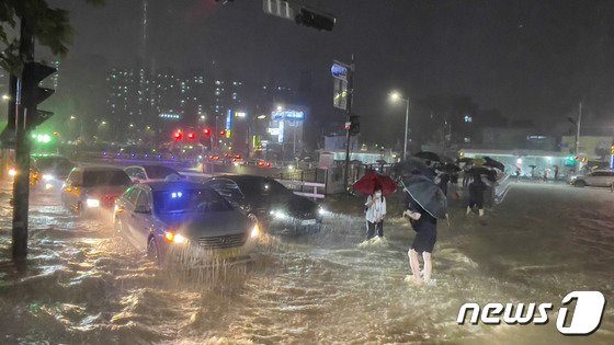 서울시와 소방당국 등에 따르면 이날 오후 8시쯤 서울 강남역 인근 하수가 역류하면서 도로와 인근 상점이 물에 잠겼다. 강남역 일대에는 차량 50여대가 물에 잠겨 있고, 완전히 통제된 상황이다.