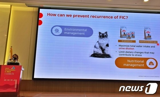 곽영화 로얄캐닌코리아 수의사는 지난 21일 부산 해운대구 벡스코에서 열린 ‘부산수의콘퍼런스'(부산수의컨퍼런스)에서 반려동물의 음수량을 늘리기 위해서는 식이 급여가 무엇보다 중요하다고 밝혔다.