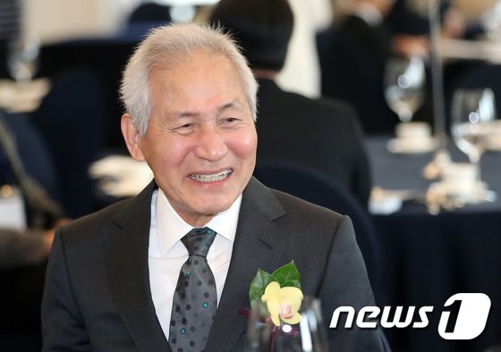 19일 서울 중구 프레스센터에서 열린 제4회 4·19 민주평화상 시상식에서 수상자로 선정된 배우 안성기가 미소 짓고 있다. 2023.4.19/뉴스1