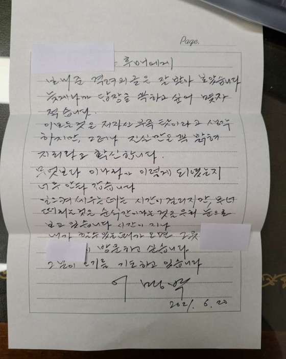 수감 중인 이명박 전 대통령이 고려대학교 후배에게 옥중에서 보낸 자필 편지가 화제를 모으고 있다.