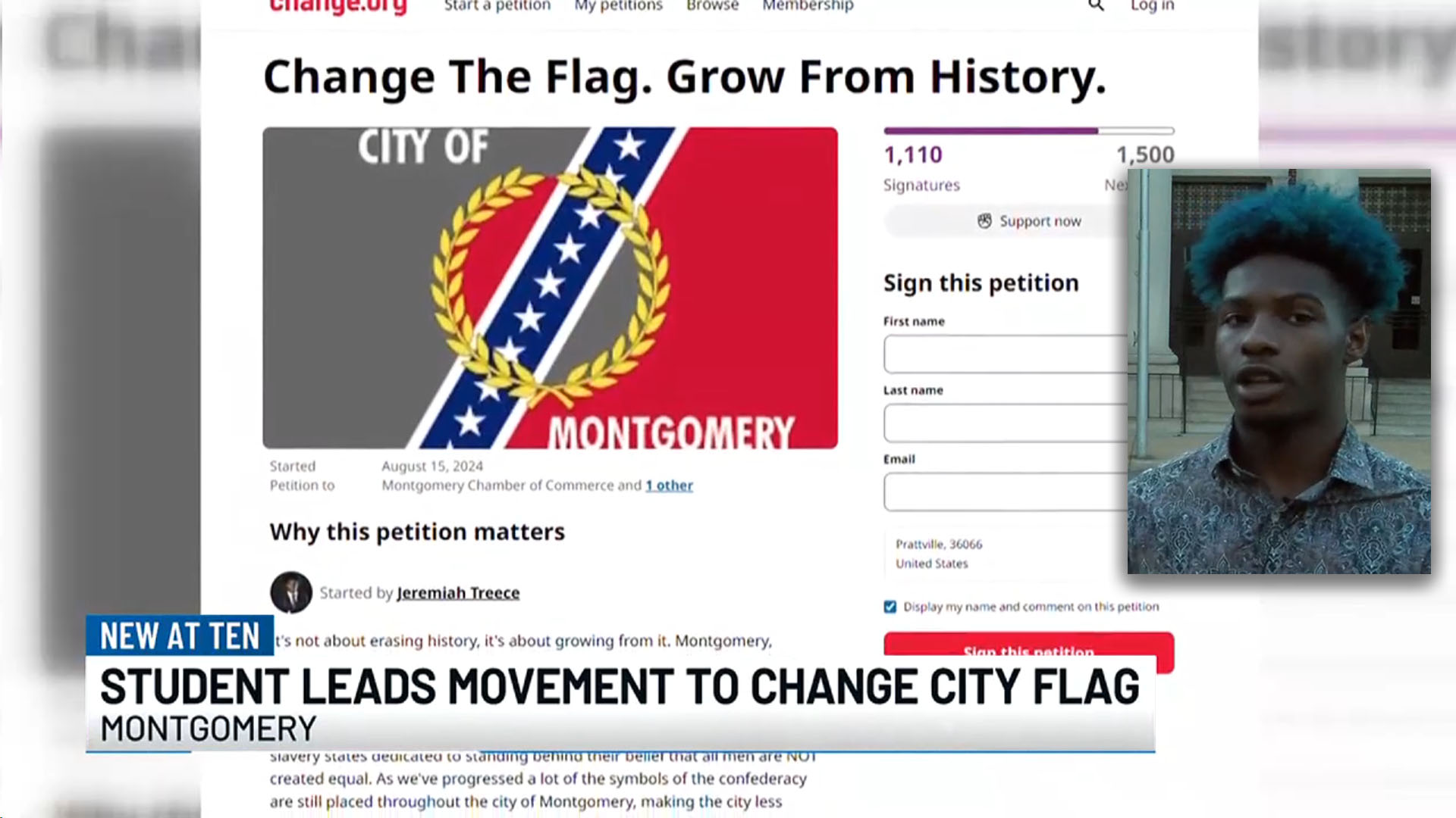 부커 T. 워싱턴 고등학교 3학년에 재학중인 제레마이어 트리스(Jeremiah Treece)가 평생 거주해 온 몽고메리 시의 깃발에 “증오의 상징”이 있다며 변경을 추진하고 있다고 WSFA 12 뉴스가 보도했다.