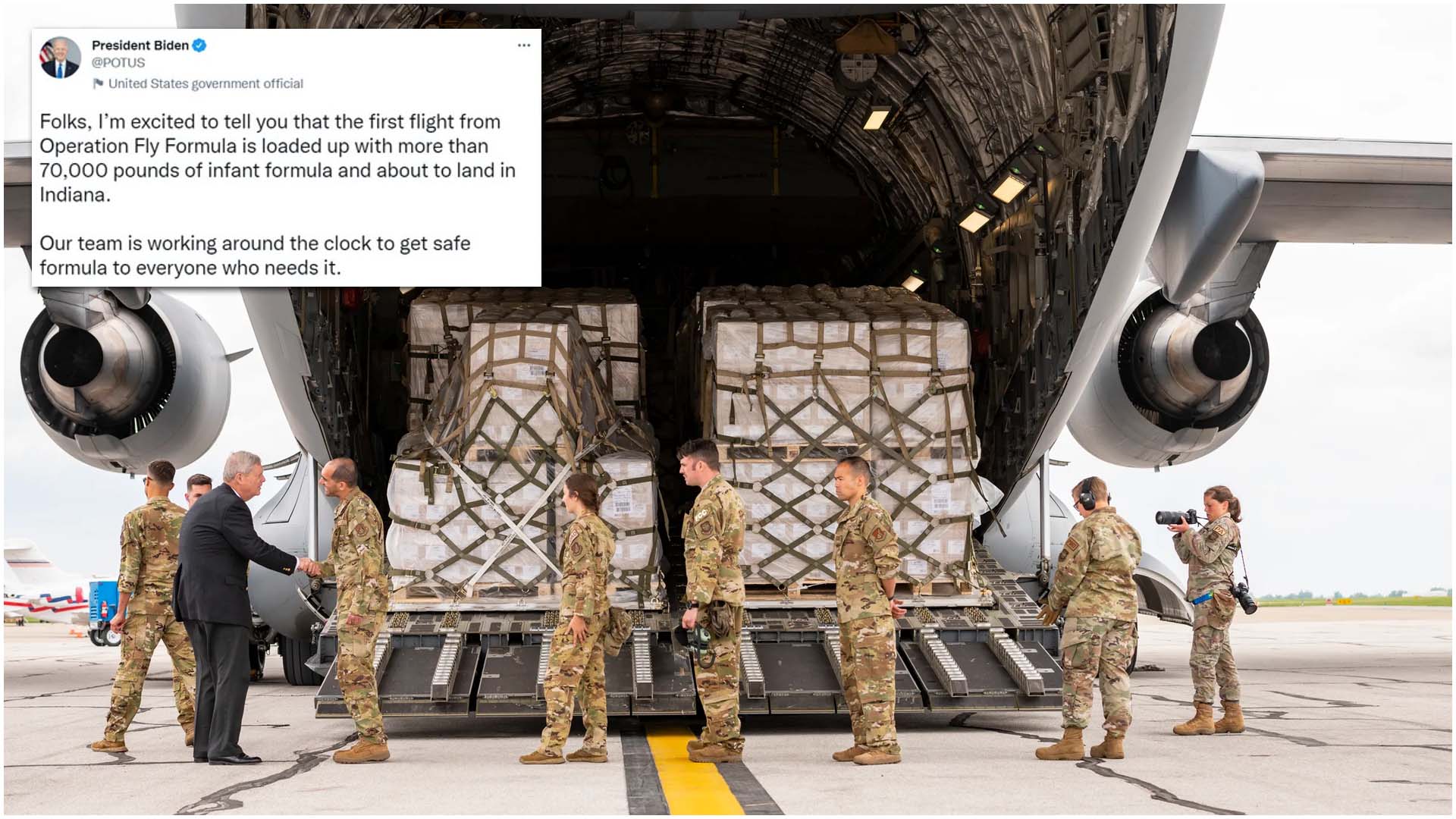 조 바이든 대통열은 “분유 비행 작전”(Operation Fly Formula)이라고 불리는 이번 작전에 공군기 사용을 허가했다. 농무부와 보건인적서비스부는 이번 작전에 따라 미국 보건안전기준에 부합하는 해외 영아용 분유를 수거하는데 국방부의 지원을 요청할 권한을 부여받았다.