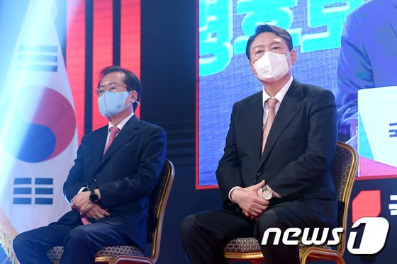 국민의힘 대선 경선 후보인 윤석열 전 검찰총장과 홍준표 의원뉴스1 © News1 오대일 기자