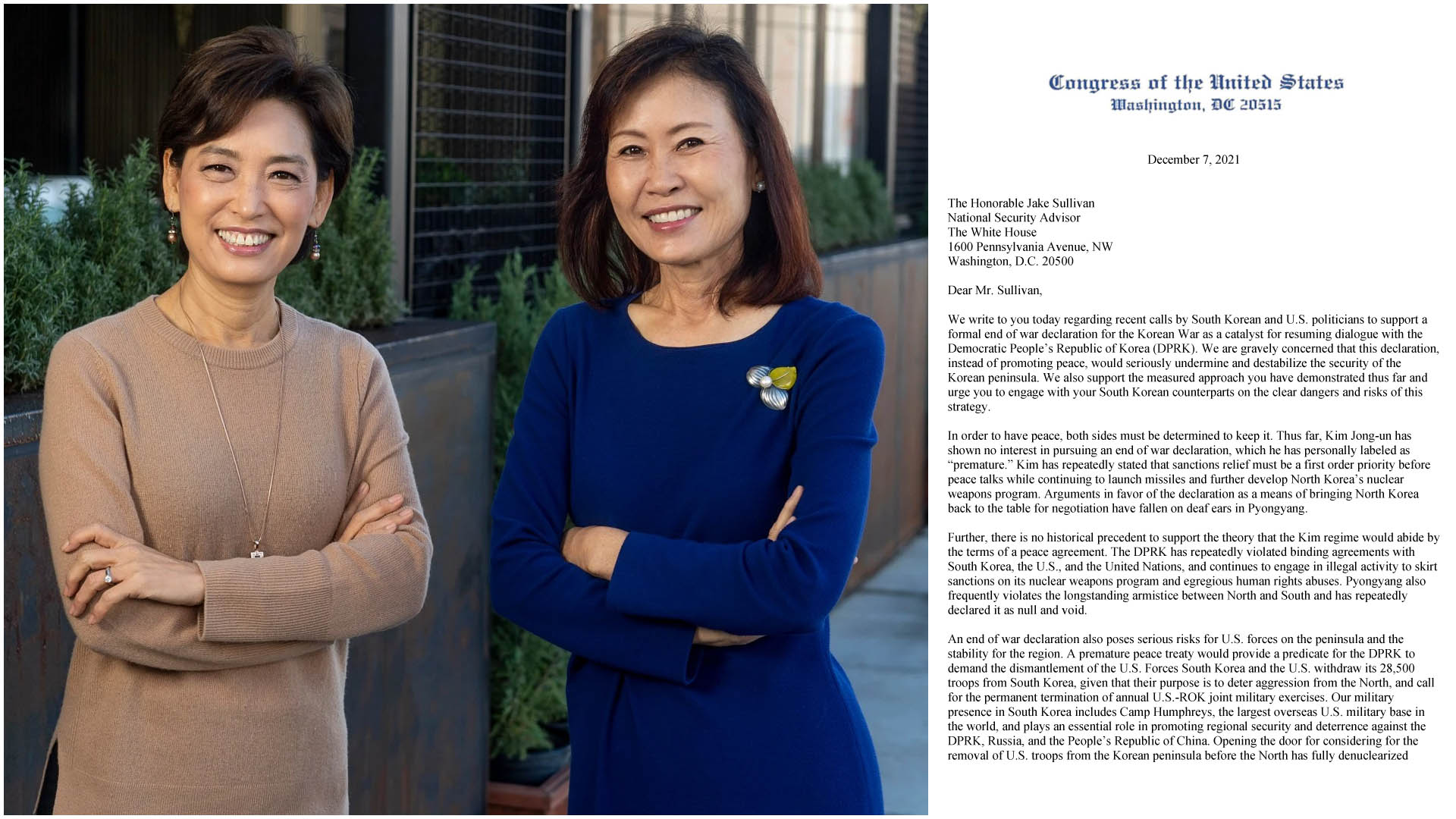 영 김(Young Kim,공화·캘리포니아) 연방하원의원과 미셸 박 스틸(Michell Park Steel,공화·캘리포니아) 의원 등 한국계 의원들을 비롯해 총 35명의 공화당 하원의원들은 종전선언과 평화협정에 반대를 촉구하는 서한을 바이든 행정부에 보냈다.