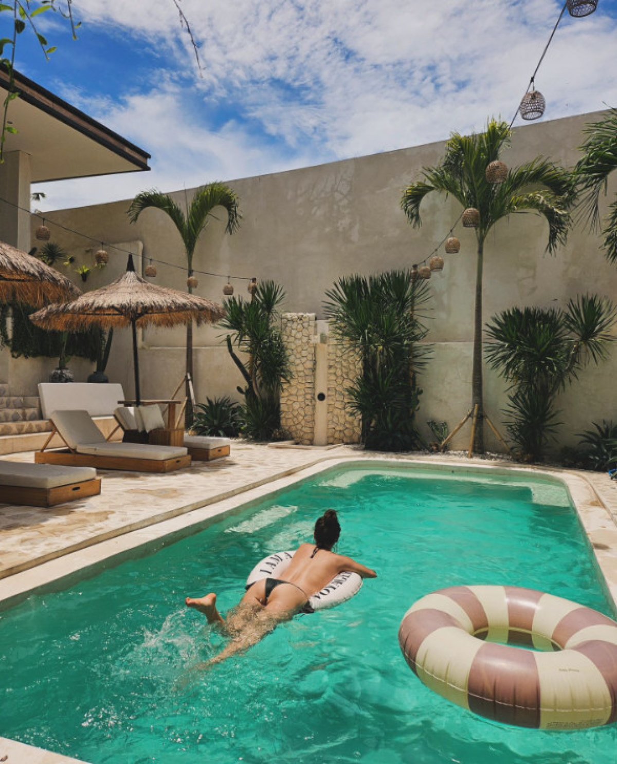 소유는 13일 자신의 인스타그램에 인도네시아 발리의 한 수영장에서 물놀이를 하고 있는 모습이 담긴 사진을 게재했다.