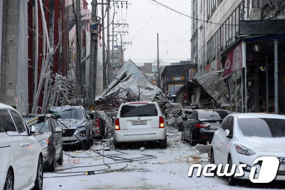 한전은 붕괴 사고가 나면서 떨어진 건물자재가 전신주를 덮쳐 정전사고까지 난 것으로 보고 오후 10시 현재도 복구작업을 벌이고 있다.