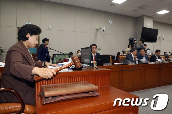 남인순 국회 정개특위 위원장이 22일 오후 서울 여의도 국회에서 열린 정치개혁특별위원회 전체회의에서 의사봉을 두드리고 있다. 2023.5.22/뉴스1 © News1 황기선 기자