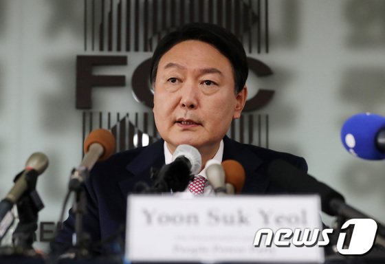 윤석열 국민의힘 대선 후보가 12일 오후 서울 중구 한국프레스센터에서 열린 서울외신기자클럽(SFCC) 초청 기자간담회에서 모두발언을 하고 있다. 2021.11.12/뉴스1 © News1 구윤성 기자