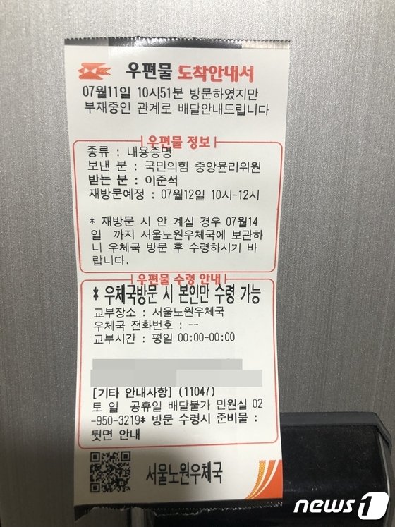 이 대표는 급변하게 돌아가는 당내 상황 속에서도 침묵 모드를 이어갔다. 그는 ‘당 대표 직무대행 체제’를 추인한 의총 결과에도 별다른 입장을 내놓지 않았다. 이 대표의 집 앞에는 ‘국민의힘 중앙윤리위원’ 명의의 내용증명이 도착했으나 부재중이라 전달하지 못했다는 우체국의 안내서만 부착돼 있었다. 인근 당협 사무실 역시 불이 꺼진 채 조용했다.