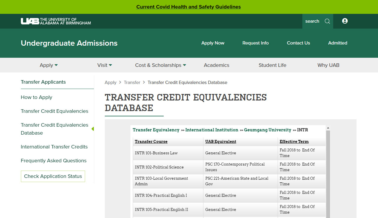 한편 UAB 홈페이지에는 최근 금강대학의 경영학 관련 교과목 중 인정한 교과목 리스트를 정리해 공지했다.