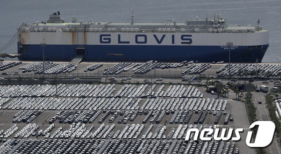 현대자동차 울산공장 수출 선적부두 인근 야적장에 완성차들이 대기하고 있다. /뉴스1 © News1 |