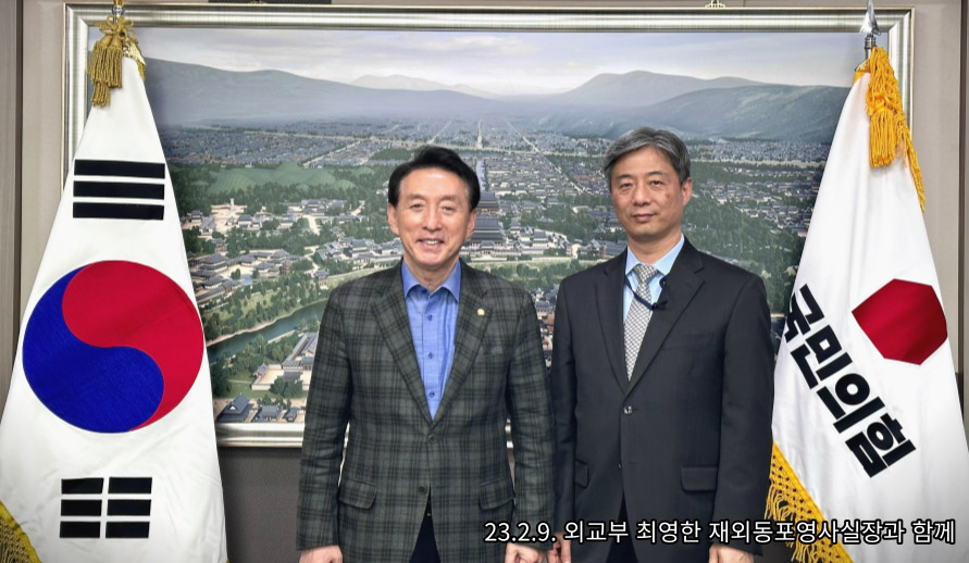 국민의힘 사무총장 겸 재외동포위원장인 김석기 의원이 지난 9일(한국시간) 외교부 최영한 재외동포영사실장과 만나 윤석열 정부의 공약인 “재외동포청” 설립 추진을 위한 실무를 점검하는 시간을 가졌다고 밝혔다.