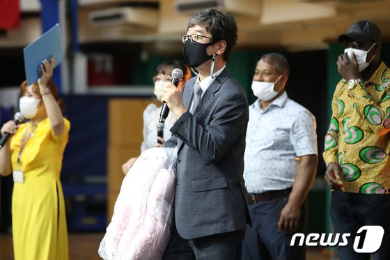 체육관 밖에서 만난 고경수 목사는 뉴스1 취재진과 악수를 한 뒤 “이주민 추석 축제가 대구 곳곳에서 장소를 옮겨가며 14회째를 맞이했다”며 “코로나19 여파로 3년 만에 열리는 축제를 통해 우울하고 힘든 시간을 보낸 이주민들이 용기와 행복을 충전하길 바란다”고 말했다.