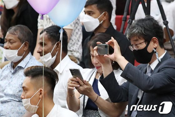 행사장에서 2시간쯤 머물며 이주민과 함께하는 추석 축제에서 시간을 보낸 고 목사는 무대 공연에 손뼉을 치고 휴대전화로 사진을 찍기도 했다.