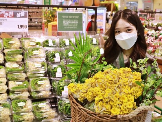 ‘꽃다발 같은데 버섯’…롯데마트, 친환경 느타리버섯 개나리에디션 출시