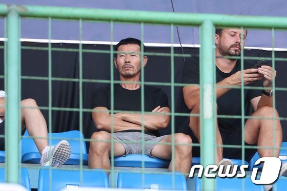 손흥민 아버지인 손웅정씨가 경기를 지켜보고 있다. © News1