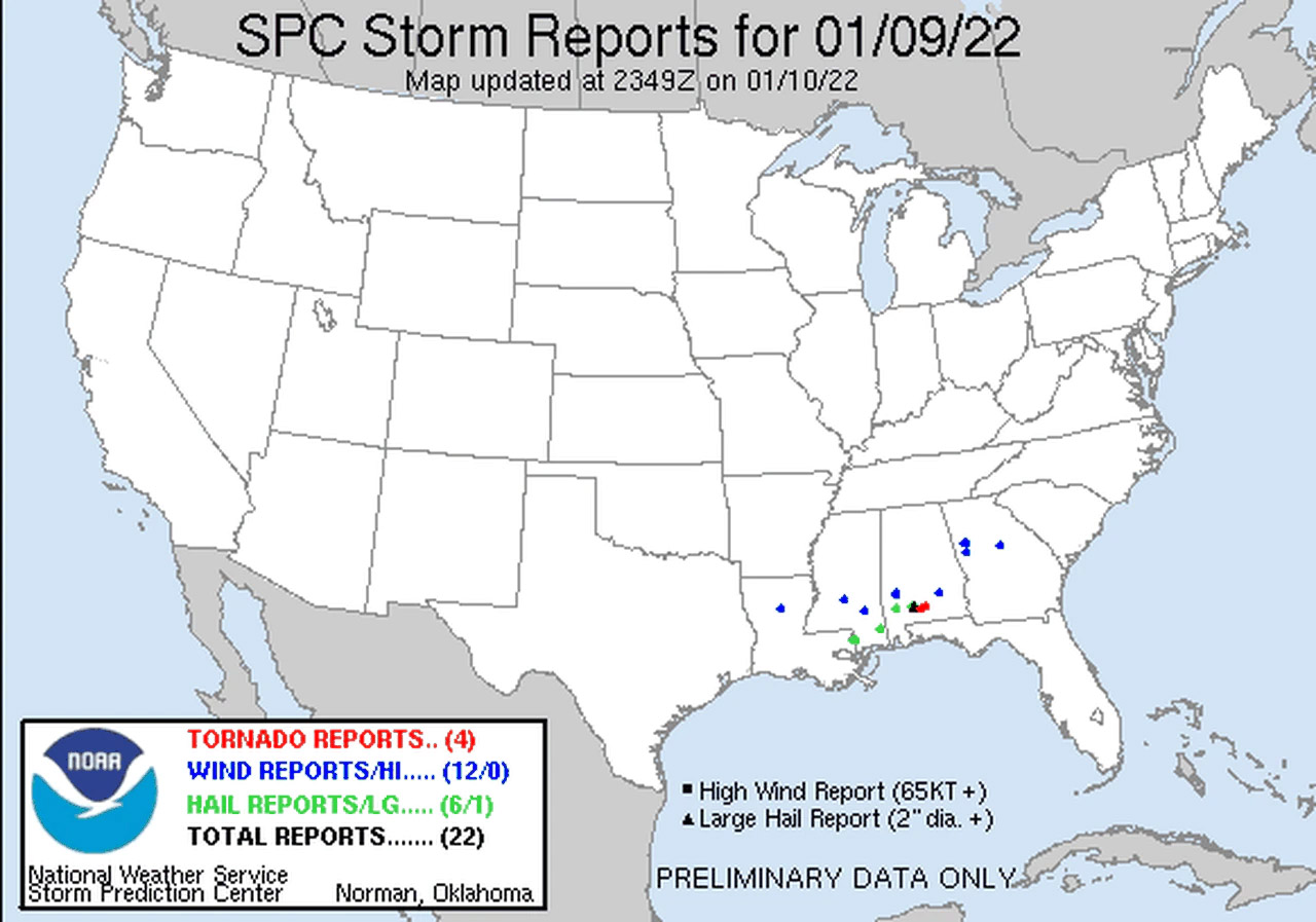 이번 폭풍은 2022년 앨라배마의 첫 번째 토네이도로 기록됐다.