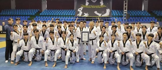 기네스 기록 세운 남승현 국기원 시범단장(가운데). (국기원 제공)
