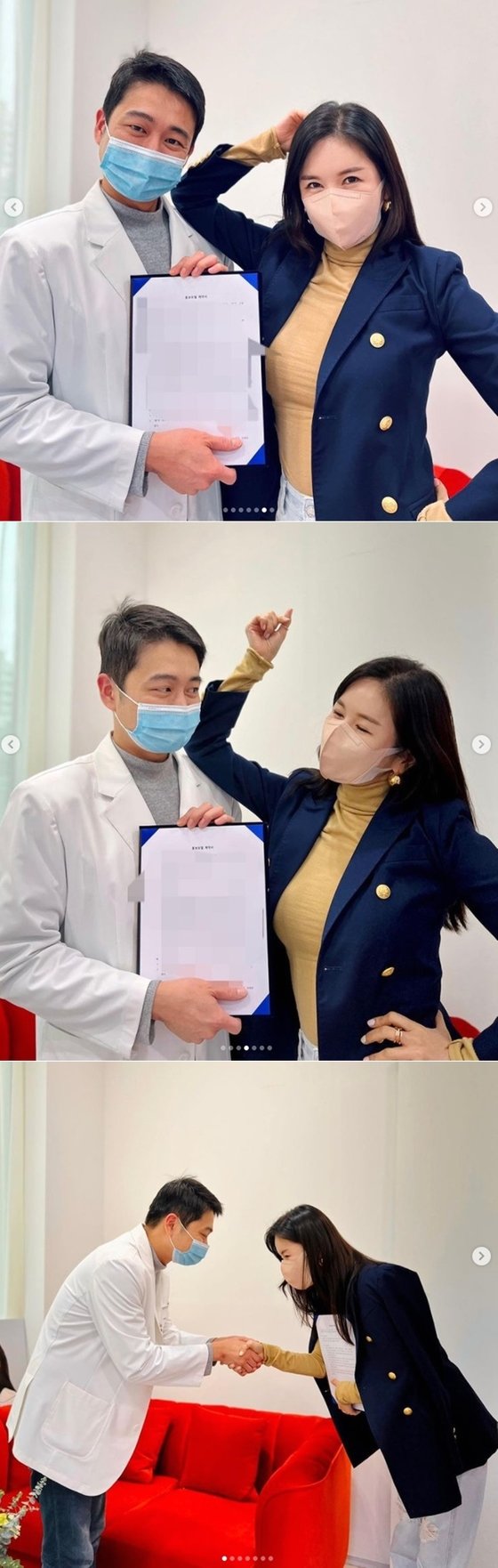 사진 속 장영란은 병원장인 남편과 진지하게 악수를 하며 계약서까지 주고받고 있다.