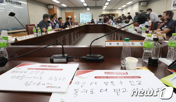 박희은 근로자위원(민주노동조합총연맹 부위원장)도 “공익위원이 제시한 안은 실질적으로 물가 인상률에도 못 미치는 안”이라며 “예전과 달리 법적 심의 기간을 계속 준수할 것을 요구하면서 졸속적으로 심의를 진행한 것에 대해 굉장히 분노스럽다”는 입장을 밝혔다.