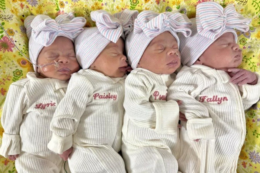 앞서 2023년에는 앨라배마주에 사는 다른 부부도 일란성 쌍둥이 두 쌍을 낳았다. 이들은 남아 2명, 여아 2명을 낳았으며, 임신 27주 차에 제왕절개 수술을 통해 세상에 나왔다.